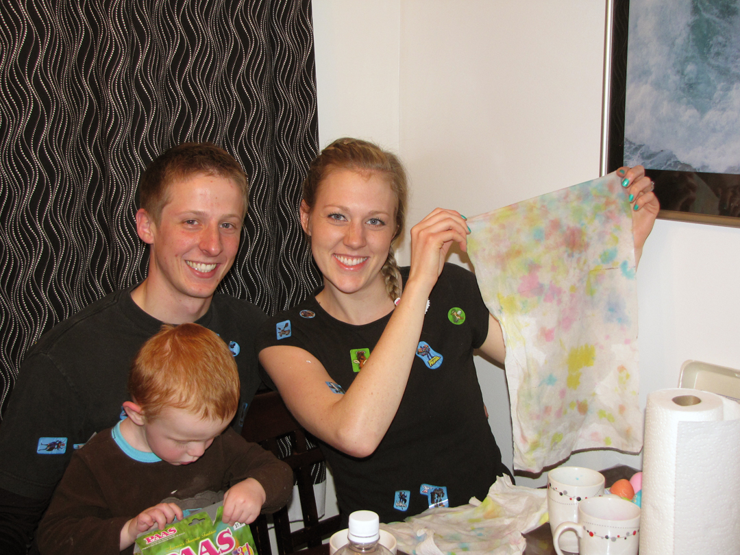 | Zeke loves dying Easter eggs and especially loved having the extra people around to do it with. |